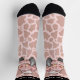 Personalizado con patrón de vaca rosa. Fondo de patrón de vaca sin foco. Color de la franja superior del personalizado. texto personalizado en cada calcetín.