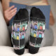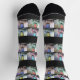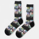 El colorido diseño de ZoeSPEAK en estos Socks de la tripulación fue hecho de la fotografía original de Zoe de una bicicleta estacionada afuera de una tienda en Key West, Florida. La ropa de la tienda cuelga en la puerta abierta detrás de la bicicleta. La foto se hace en cuatro combinaciones de colores: bicicleta roja, bicicleta azul, bicicleta verde y bicicleta amarilla, con los correspondientes colores de la ropa. El conjunto está decorado en tonos malva y grises de oliva, y el fondo es negro de mármol.
