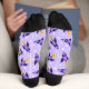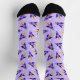Un patrón de cohetes retro morados y estrellas blancas en un fondo malva.