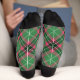 Tartán verde y rosa. Patrón sin foco. Color de la franja superior del personalizado. texto personalizado en cada calcetín.