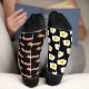 El tocino delicioso y los huevos no coinciden con los calcetines.