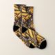 Estos calcetines ofrecen un diseño de mariposas de monarca preciosas (plexippus del Danaus) en colores del naranja, del amarillo, del oro, del negro, del marrón y del blanco. Las marcas fabulosas se asemejan a un modelo abstracto artístico. ¡Una qué idea maravillosa para un entusiasta del entomólogo o de la mariposa!