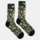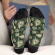 Paisley con elementos botánicos ciprés. Patrón sin foco. Color de fondo personalizado. Color de la franja superior del personalizado. texto personalizado en cada calcetín. Monograma personalizado.