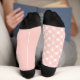 Hermosos calcetines desiguales de cuadros melocotón pastel Chic Descuidado, calcetines no coincidentes en tonos complementarios. Patrón a cuadros melocotón pastel Chic Descuidado vintage.