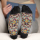 Un cuadro vibrante y colorido con un patrón repetido de cráneos de azúcar adornado con detalles florales intrincados. Ideal para añadir un toque de cultura mexicana a la decoración o vestimenta de la casa.