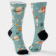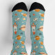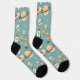 Un diseño de calcetín azul basado en patrones con dibujos de temática espacial. Ideal para momentos acogedores y amantes de la ciencia ficción.