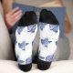 Este par de calcetines de diseño de mariposa son una tela suave que cubre los pies, típicamente usados en zapatos interiores para proporcionar confort, calidez y absorbencia. Puede personalizar este par de medias con cualquier texto que elija. Si necesita ayuda para personalizar, póngase en contacto con nosotros a través del enlace de mensajes de esta página. Par de calcetines de diseño de mariposa.