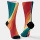 Olas de estilo retro multicolor ilustracion de patrón geométrico con rayas onduladas naranjas, rojas, beige, azules y turquesas en fondo azul oscuro