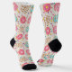 Este lindo diseño de patrón de donut y rociadores tiene varios sabores diferentes. Hay glaseado rosado con remolinos, glaseado azul y rosa con rociadores, e incluso un chip de chocolate de vainilla. Todo en un fondo de avena de color para equilibrar lo dulce. ¡Sí!