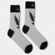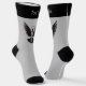 Paloma voladora con un icono de clave simple. Color de fondo personalizado. Color de la franja superior del personalizado. Monograma personalizado. texto personalizado en cada calcetín.