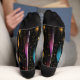 Eleva tu estilo vacacional con estos elegantes calcetines negros adornados con brillantes acentos estrellados en tonos dorados, rojos y violetas. Perfecto para añadir un toque festivo a su ropa o regalar un accesorio de invierno único. ¡Celebra la temporada con elegancia celestial!