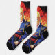Esta cautivadora obra de arte representa al presidente Trump como un poderoso guerrero samurai que se mantiene confiado en un ambiente de fuego. Está vestido con una tradicional armadura samurai azul y dorada, sostiene una katana y está rodeado de demonios feroces y míticos. El intenso cielo rojo y las llamas aumentan la atmósfera dramática y fantástica, convirtiendo esta imagen en una representación sorprendente de una escena de batalla heroica.