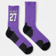 ¡Otro par de calcetines deportivos asesinos de Jessica Amber! Estos calcetines de alto rendimiento de la tripulación tienen letras en negrita de estilo varsity y un esquema de color morado, blanco y negro. Un patrón de puntos tenue emula el aspecto de poliéster de malla neta, que se ve comúnmente en uniformes de baloncesto. Puede agregar el nombre del equipo y el número de equipo. ¡Haz un juego para que tu equipo gane con estilo! ・・・ Para más prendas atléticas, visita mi tienda Zazzle.com/JessicaAmberArtist ⭐ Para pedidos de personalizados, contáctame a través de la mensajería de Zazzle.