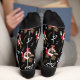 Personalizado divertida cara diseño de calcetín de fotos con su foto mascota con cánticos de renos y gráficos de vacaciones en un fondo negro (puede cambiar el color de fondo cuando usa la "Herramienta de edición usando diseño" en la sección 'Personalizar'). Permite la personalización de la imagen de la cara de tu mascota como un lindo reno con corderos usando un sombrero de Santa y una bufanda roja y blanca. ¡El envoltorio perfecto para regalar sonrisas a usted, a su familia y amigos, perro, gato y cualquier amante de las mascotas! ¡Un gran regalo para los amantes del calcetín o como Navidades de engorde, regalo de cumpleaños o Día de la Madre! ©Marisu Valencia