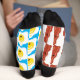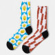 Un par de calcetines de Ricaso que no coinciden con el de Bacon y el de los huevos - un calcetín presenta tocino, el otro muestra un patrón de huevo. Calcetines con patas de novedad divertida.