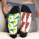 Un par de calcetines de Ricaso que no coinciden con el de Bacon y el de los huevos - un calcetín presenta tocino, el otro muestra un patrón de huevo. Calcetines con patas de novedad divertida.