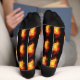 Una brillante pluma de pavo real hecha de fuego y llama sobre fondo negro.