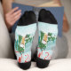 Un encantador saludo de Navidades con las palabras "Feliz Navidad" en un elegante guión rojo, enmarcado por hojas huecas festivas y un arco rojo. El entorno muestra un paisaje invernal tranquilo con un pueblo cubierto de nieve, casas acogedoras y pinos bajo una suave nevada. Este alegre diseño capta la esencia de una temporada tradicional de Navidades, lo que lo hace perfecto para tarjetas de vacaciones, decoración de temporada y exposiciones festivas.