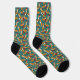Estos zorros están listos para los Navidades y tú también estarás con estos adorables calcetines. Estos calcetines de la tripulación tienen ilustraciones de zorros adorablemente festivos usando sombreros de Santa Elena y coronas de Navidad y llevando ornamentos y medias de Navidades. Los ilustraciones están situados en un fondo verde azulado oscuro y acentuados con hojas y bayas huecas, adornos de árboles y copos de nieve blancos.
