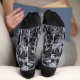 Estos Socks Unisex impresos por todas partes presentan una flor Dahlia negra y gris con acentos blancos.