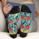 Los calcetines son muy acogedores, con flores naranjas, amarillas y blancas en un suave fondo azul marino. Ideal para añadir un toque de belleza boho a tu estilo cotidiano.