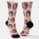 Estos dos calcetines de fotos adorables presentan dos fotos de sus propios hijos, nietos, mascotas o familiares en un patrón de fila con triángulos blancos sobre un fondo de oro rosa, y son los calcetines personalizados perfectos para presentar a su hijo, esposo, esposa, perro, gato o a cualquiera que ama. ¡Este es el regalo perfecto para el abuelo o padre, un gran Navidad que se alimenta!