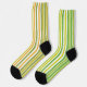 Las rayas de frutas divertidas. Calcetines impares y no coincidentes, tonos complementarios de tonalidades de lima verde pálido o limón.