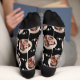 ¡Estos divertidos atuendos de boda con motivos de recién casados negros o calcetines informales muestran la foto de la pareja y el corazón blanco en un patrón compensado y sus nombres y fecha boda! Son perfectas para el novio, ya que camina por el pasillo, como regalo para la novia, como favor de la fiesta nupcial, o como regalo de matrimonio o de ducha para la pareja feliz. El color de fondo también es personalizable para que coincida con los colores bodas, si lo desea.