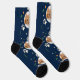 Calcetines Fun Cat Photo Navy Blue Tropical Hawaiian