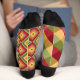 Divertido calcetines extraños que no coincidían. Luminosas medias a la moda que no coincidían. Calcetines para mujeres y hombres. Calcetines de Navidades trippy Groovy. Extraño pero coincidiendo con medias de la tripulación para él y para ella. Rojo amarillo y verde, rayas, motivos cuadrados.