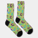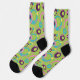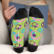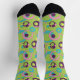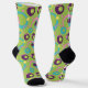Un fondo verde brillante está adornado con un patrón diverso de círculos, puntos y anillos en una variedad de colores vivos, como rosa, azul, púrpura y amarillo.