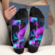 ¡Estos calcetines geniales tienen un diseño galáctico morado y azul con estrellas y nebulosas!