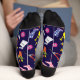 Estilosos calcetines azul marino adornados con herramientas e íconos usados por jardineros, paisajistas, botánicos y horticultores por igual.