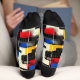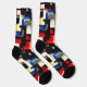 Lleva un toque llamativo a tu armario con estos calcetines geométricos modernos, que presentan bloques de colores llamativos en rojo, azul, amarillo y negro. El diseño dinámico se ve realzado por líneas de rejilla negras elegantes y acentos grises sutiles sobre un fondo crema. Perfectos para aquellos que aman el estilo contemporáneo y el toque artístico, estos calcetines hacen una declaración audaz y única.