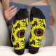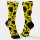 Calcetines en un patrón de grandes girasoles dorados, con centros marrones de chocolate profundo, acentuados con negro