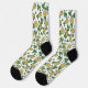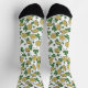 Estos divertidos calcetines verdes y blancos del Día de San Patty presentan un patrón con monedas de oro irlandesas dibujadas a mano y shamrock verde en negro. La frase "Lucky You" está repartida por todas partes.