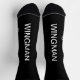 Un par divertido de medias de regalo para tu Groomsman. El texto en las medias dice 'Wingman' y el nombre se cambia fácilmente por tu propio regalo Groomsman personal. Elegante negro con texto blanco.