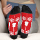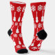Calcetines de Navidad rojos y blancos con estampado de guitarras y copos de nieve.