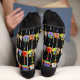 Calcetines negros con patrón de guitarras acústicas y eléctricas psicodélicas y coloridas