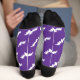 Graciosos calcetines de diseño de Halloween para niños y adultos. Con fondo morado y patrón de murciélagos blancos, estos calcetines serán perfectos para esta temporada de Halloween.