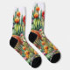 Estos hermosos calcetines de cactus son perfectos para cualquiera que ame cactus o plantas en general. El diseño presenta una gran variedad de cactus floridos sobre un fondo blanco de color acuático. Estos son calcetines florales divertidos para añadirlos a tu armario.