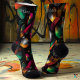 Entrar en un mundo de diseño dinámico con estos calcetines hexágonos vívidos. Con gruesos gradientes de esmeralda, magenta y oro sobre un fondo negro profundo, este diseño combina precisión geométrica con contraste de color radiante. Perfecto para declaraciones de moda audaces y estética contemporánea.