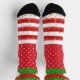 What a fun pair of Christmas socks. This design is made up of various polka dot and striped patterns. On the calf of each sock there’s an image of a Christmas Gnome.