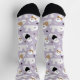 El bichón cutáneo frita perros en sudaderas y arcos con huesos de perro dispersos y patrones de huellas de pata.