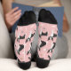Perros de Boston Terrier con abrigos blancos y negros sentados y parados con huesos de perro dispersos y patrones de huellas de pata.