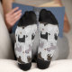 Bulldog francés con tonos negros, afeitados, blancos, grises y romanos, huellas de trineo y patrones de huesos de perro.