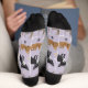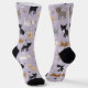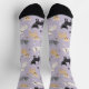 Perros de chihuahua lindo con abrigos negros, marrones, tan, crema, grises y azules sentados y parados con huesos de perro dispersos y patrones de huellas de pata.