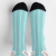 This delicious design that features aqua blue with pink and white pinstripes. At the top of each sock, inside and out, there is a white circle with sweet cupcake treat. Each treat is piled high with pink icing and a cherry to top it off.