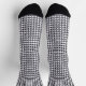 Calcetines minimalistas de papel mascota. Combinación clásica de color blanco y negro con una impresión muy ajustada de huellas de pata. Buen regalo para cualquier amante de los animales.