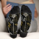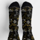 Intricate floral pattern with gold and white branches, leaves, and flowers on a black background. The design feels elegant and sophisticated.